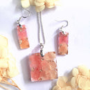Material: dried flower, non-allergic metal alloy pendant clip, gold leaf, polyepoxides
