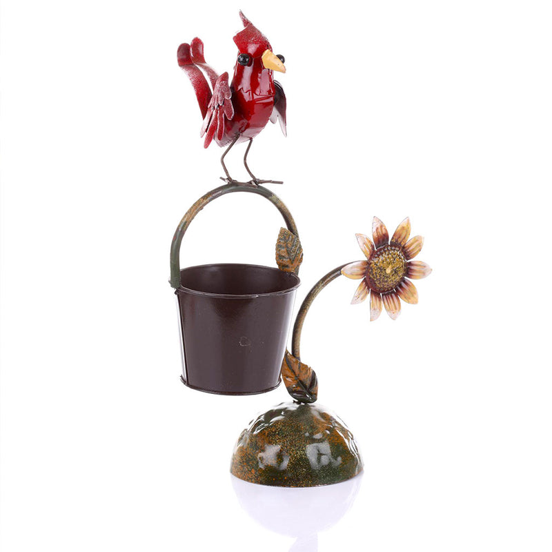 A beautiful red bird perched on a tree and a flower blooming besides it will surely bring a smile to your face. Created with precision and unparalleled craftsmanship this Planter will surely make a fun addition to your home and garden. This made of all metal, handmade and hand painted.