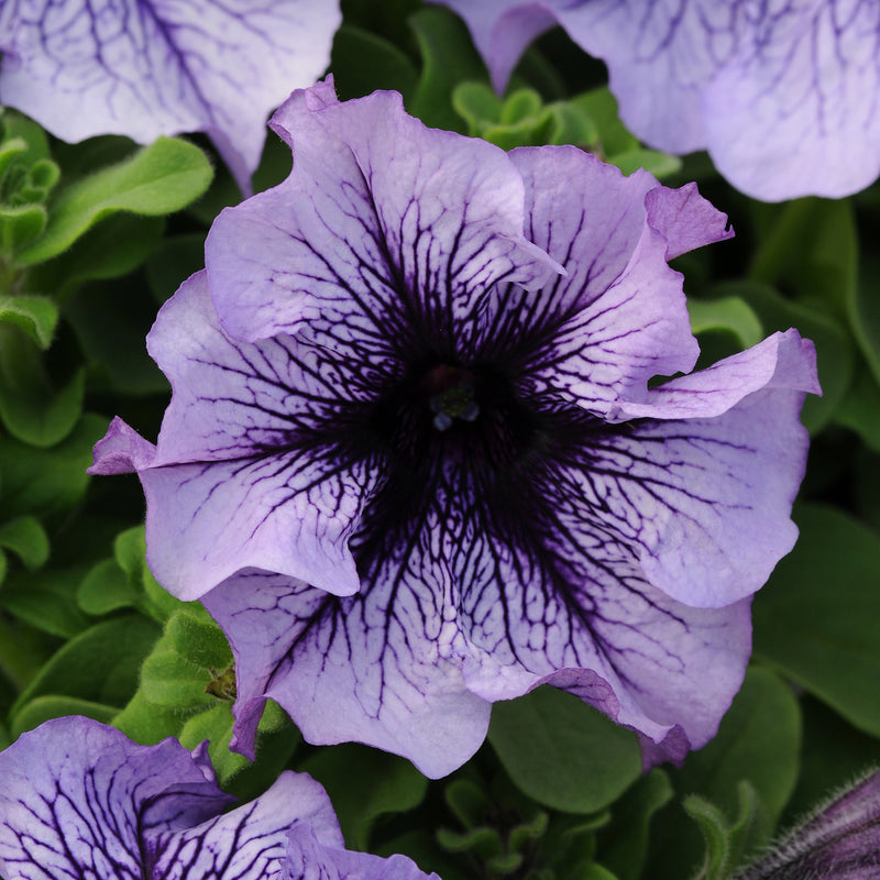 Daddy is a vigorous spreading type petunia, with large grandiflora-type blooms with wavy edges that stand up to the rain. The six colours in the series range from silvery pastel pink through to blues and the deepest orchid purple, each are distinctly veined. They are well-known for earliness, uniformity and weather tolerance.