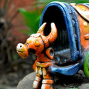 This hand-painted terracotta bullock cart is made by rural artisans! Add a dash of colour to your home decor with this absolutely gorgeous decorative piece. This decor gives a Rural cultural touch to your home!