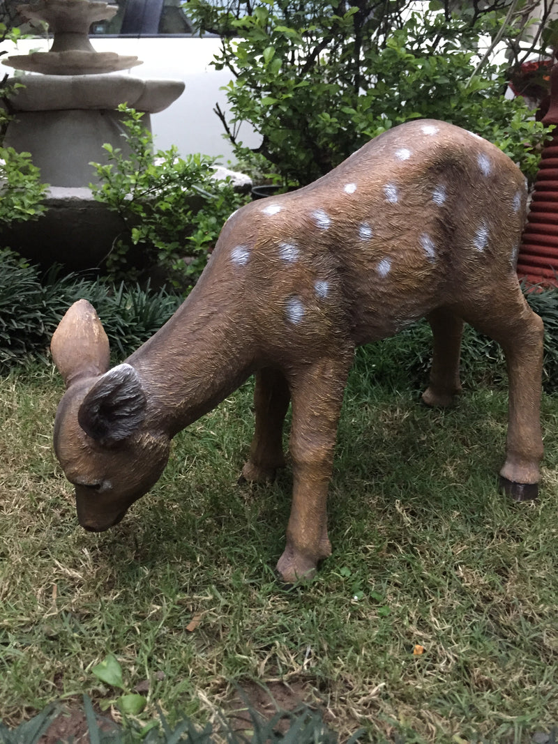 Our deer decor collection is so incredible you can enjoy them all year round! This pretty standing Deer, grazing peacefully is a beautiful piece of art. It is handmade and hand painted with special paint to make it extra durable. Now add beauty to any home, garden, or landscape property with our amazing new deer !