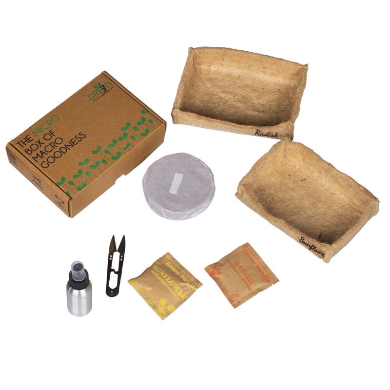 Greenbundle Microgreen kits come with the Jute base trays, which is very eco-friendly. Light in weight, easy to use, these kits make for a perfect introduction as to how to grow microgreens for your family . Apart from that, it's natural raw look makes it a must have for your garden.