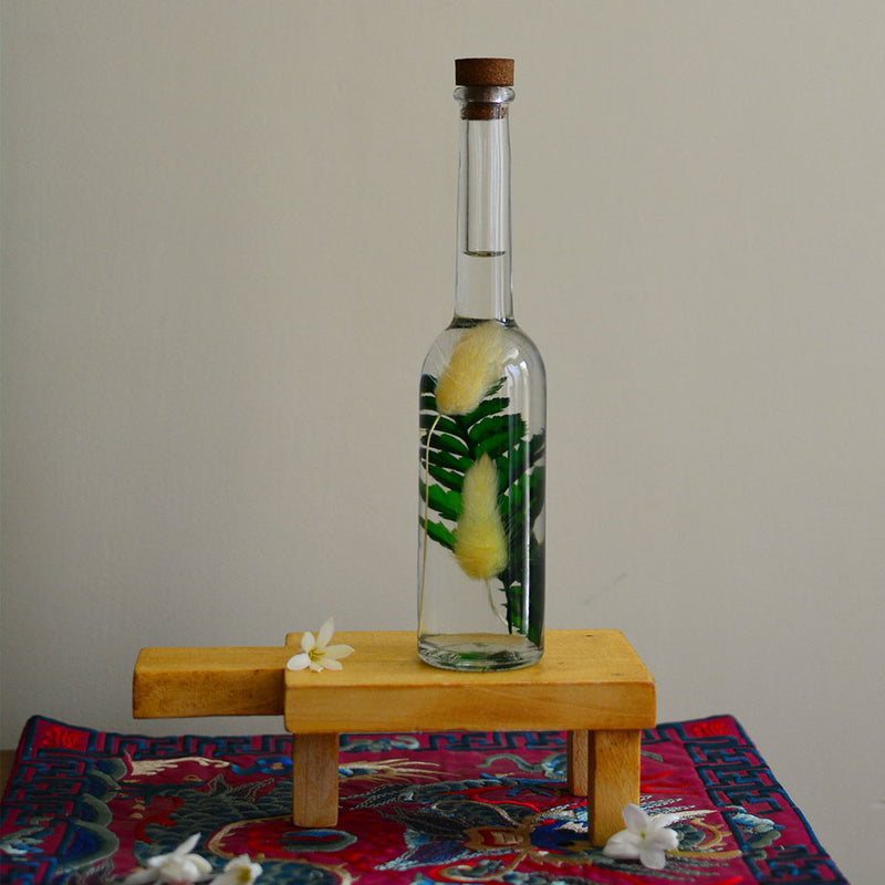 Material Used: Glass Bottle with Cork, Oil, Hydrangea, Baby Breath