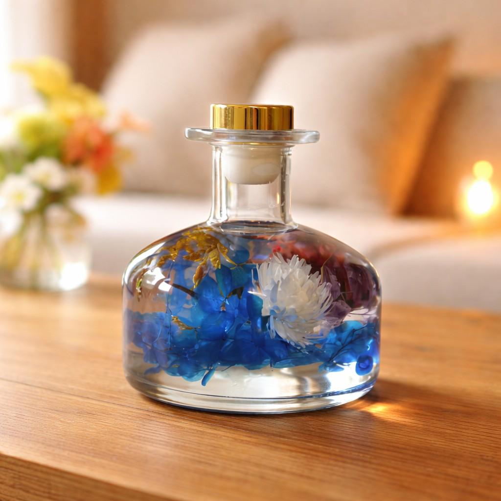 Material Used : Glass Bottle with Cork, Hydrangea, Forget Me Not's