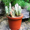Stems are 4-(or 5)-angled, erect or ascending, often slightly twisted, grey-green, rather thick 7 cm tall, and about 2 cm in diameter, the persistent tubercles along the stem-angles end in a sharp dirty creamy white thorn up to 4 mm long