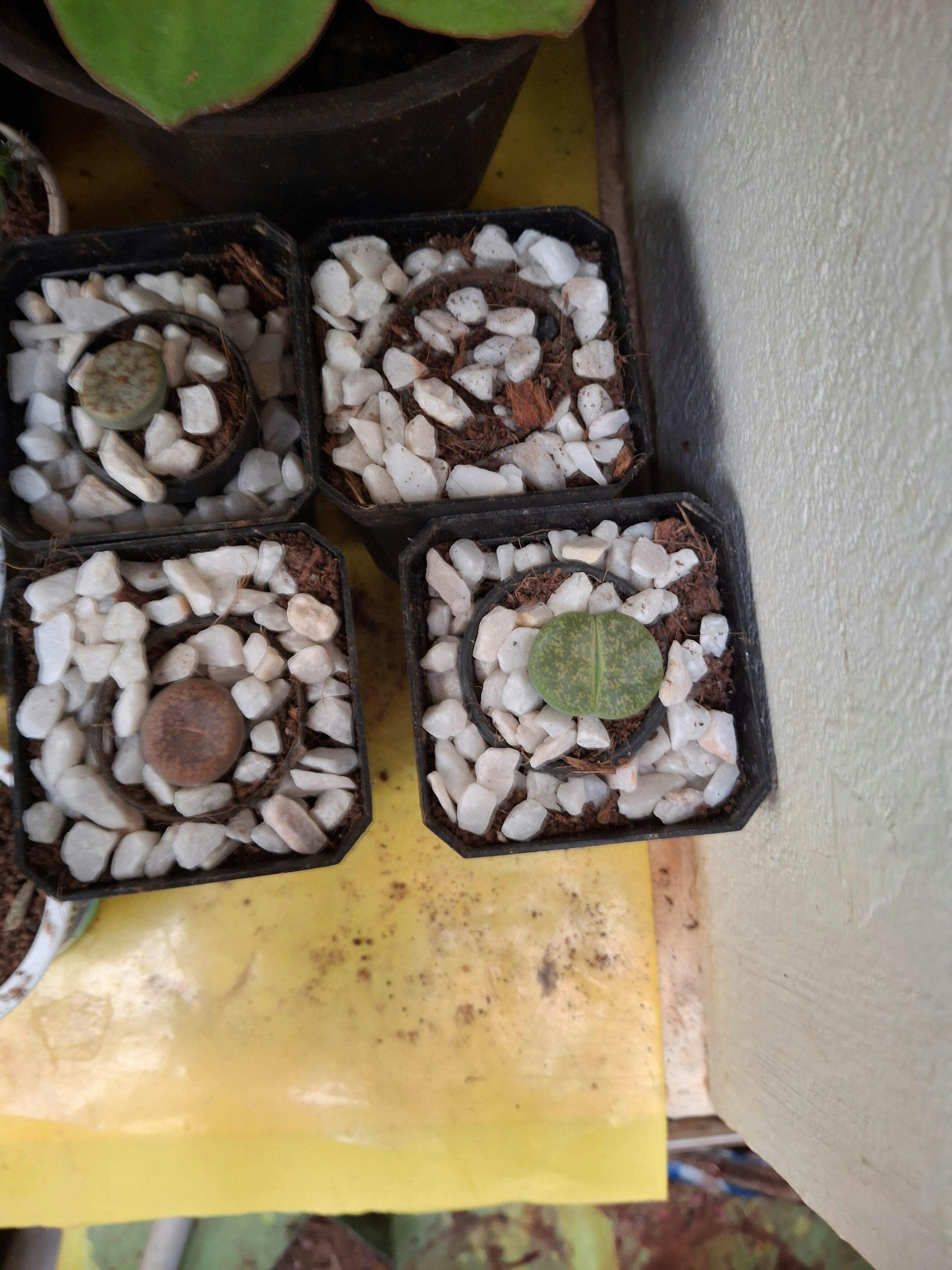 When the plants are a year old, water them once every two weeks in summer and once every 2 months (if necessary) in winter. When the new leaves are pushing though the old leaves, watering should be stopped altogether otherwise leaf pairs start stacking on top of each other. Since the stone plant has such a long tap root,the pot should be at least 3.5-4 deep. Proper drainage is a must so make sure the pot has a hole in the bottom.