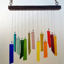 The Suncatcher Rainbow Strip Windchime features a vertical cascade of rainbow‑coloured glass strips. It catches the light and sings softly in the breeze, adding joy to any space.